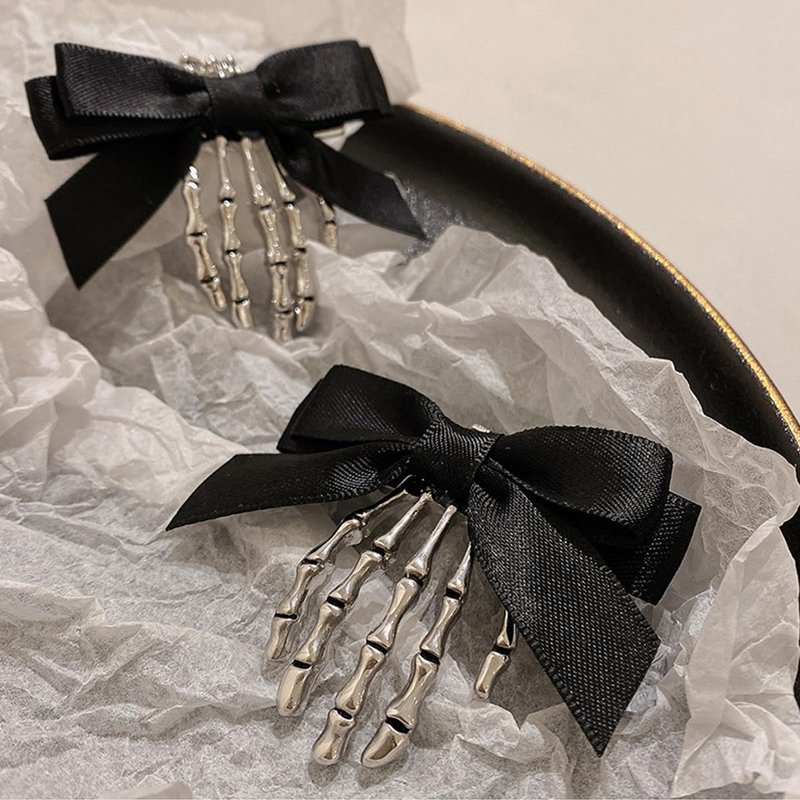 Silver Skeleton Claw Butterfly Bows Hair Clips