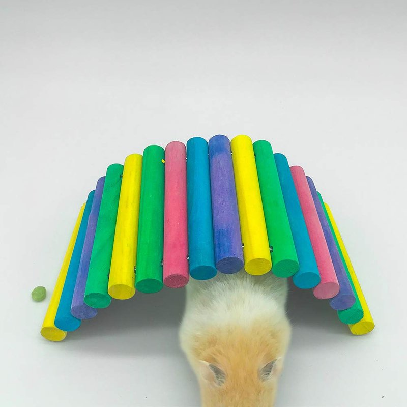❤ Rainbow wooden bridge is recommended for bunny, snakes, lizards, guinea Pig, syrian hamsters, Dwarf hamsters, mice, chinchillas, rats, sugar gliders and similar-sized small pets.