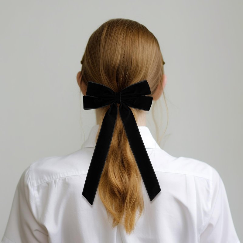 - 💗💗 Easy to Use: Our alligator clip velvet streamers make it easy to wear the bow in one step. We prioritize your little one's safety and comfort, so each pigtail bow is fully covered with soft velvet to prevent any hair damage. These high-quality hair ribbons can create any hairstyle you want, from ponytails to twist braids and long or curly hair. Our black bow hairband is also easy to match with hats, bags, and clothes.