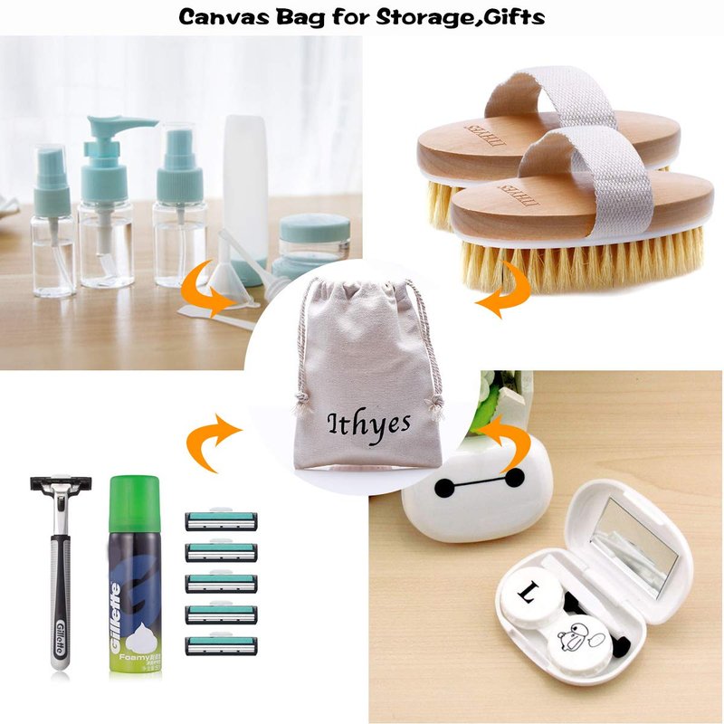 - For all Ithyes products , a qualified canvas bag is offered. Light weight, easy to open, great choice for home storage or travel convenience. You can also use it to store the dried body brush or other small items as a cute gift .