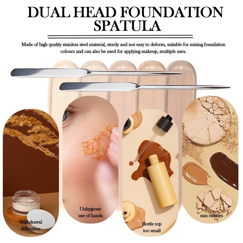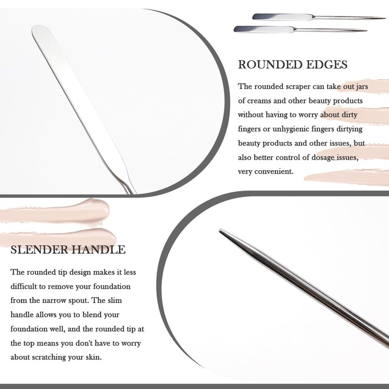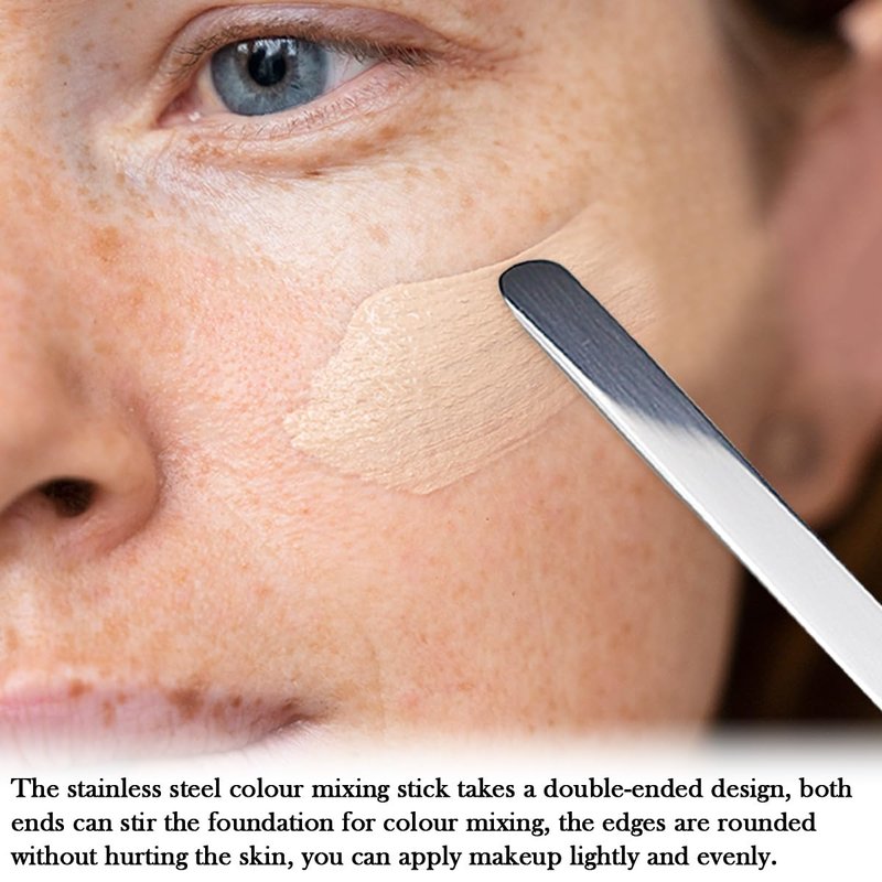 - Stainless steel: strong and non-deformable. Compared to applying foundation by hand or with a makeup brush, stainless steel foundation spatula is more even and easy for beginners to use.