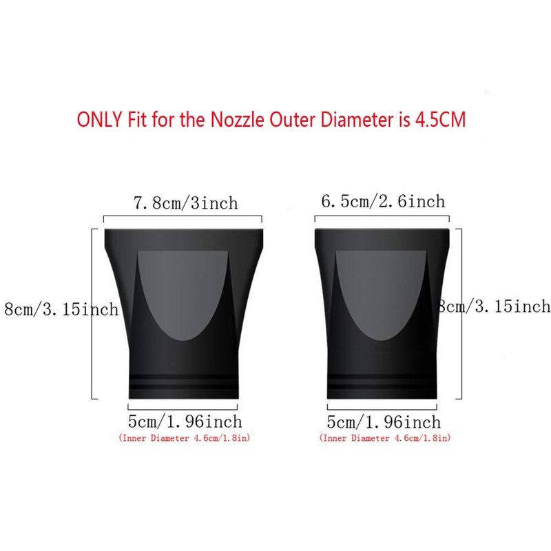 - Product Detail Size: One Size:8*5*6.5cm(3.15*1.96*2.6 inch) ;The other size :7.8*8*5cm(3*1.96*3.15Inch); The nozzle is ONLY fit for the outer diameter 4.5cm hair dryer !