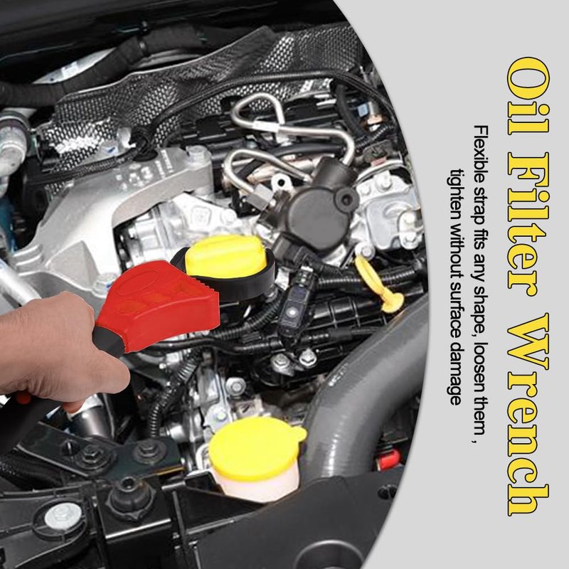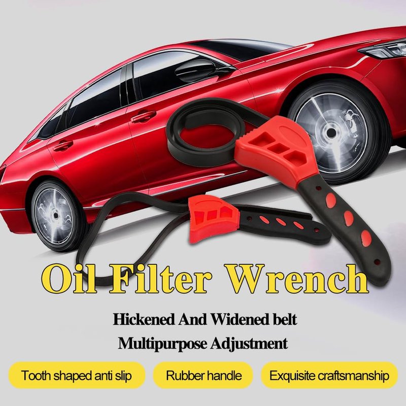 - [Easy to use]: This Adjustable Oil Filter Wrench is easy to operate and comfortable to hold. You just put it on the part that needs to be loosened or tightened, tighten the belt and turn it to open or close quickly. There are two colors for you to choose from, yellow and red.