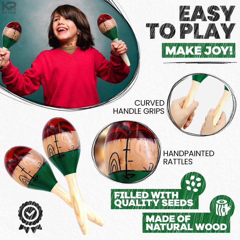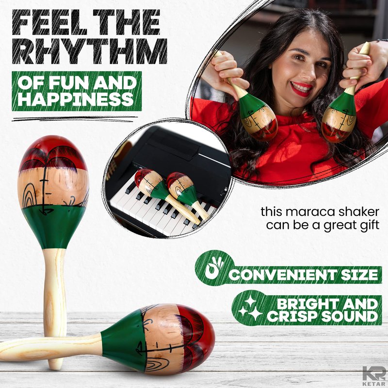 - Easy to Play Percussion Shaker: These perfect rhythm musical instruments for adults are very easy and cheerful to play, just shake kids maracas and you will feel the rhythm of the Latin-American vibe around you. Shake these large wooden maracas again and make a bright and crisp sound to please your friends.