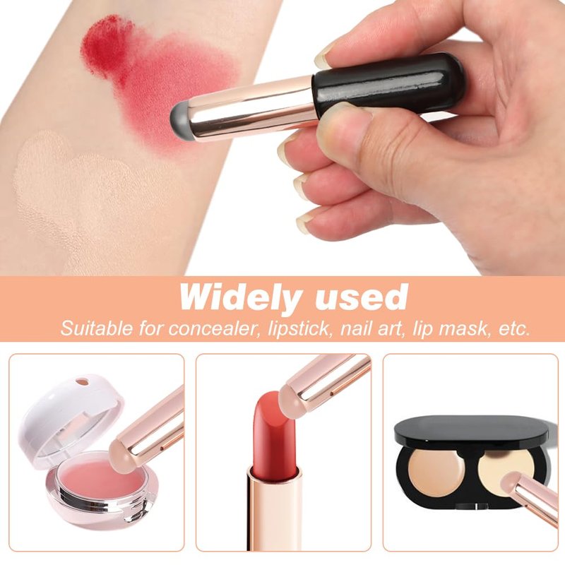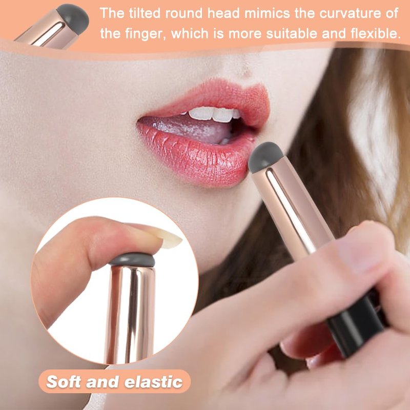 - 【SLANTED ROUND HEAD】 The slanted round head, imitating the curvature of fingers, is more suitable and more flexible than fingers. The small brush head is easier to control and can easily blend lip makeup. It comes with a dust cover.