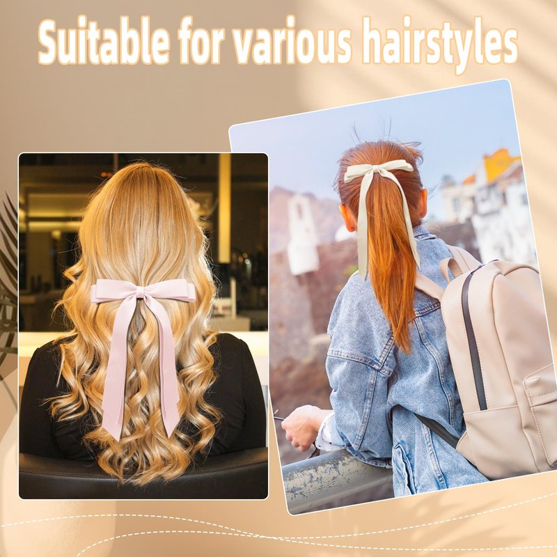 2Pcs Silky Satin Hair Bows for Women Hair Clip Hair Ribbon Ponytail Holder Accessories Slides Metal Clips Hair Bow for Girls Toddlers Teens Kids-Beige/Pink