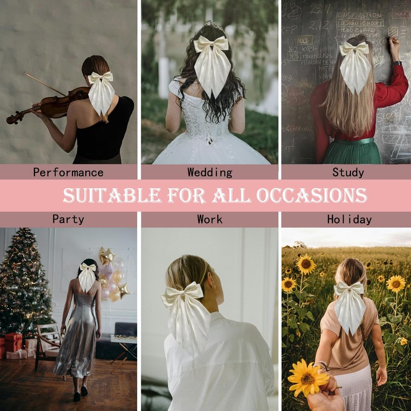 - 【 High quality material 】The hair clip is made of high-quality satin fabric Bowknot and metal Spring clamp, It looks very delicacyand elegant, not easy to breakdown. The metal spring clamp has moderate elasticity, durability, and can be reused. It can fix the hair well, not too tight, and easy to open the clip.