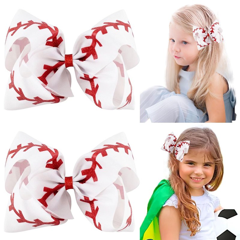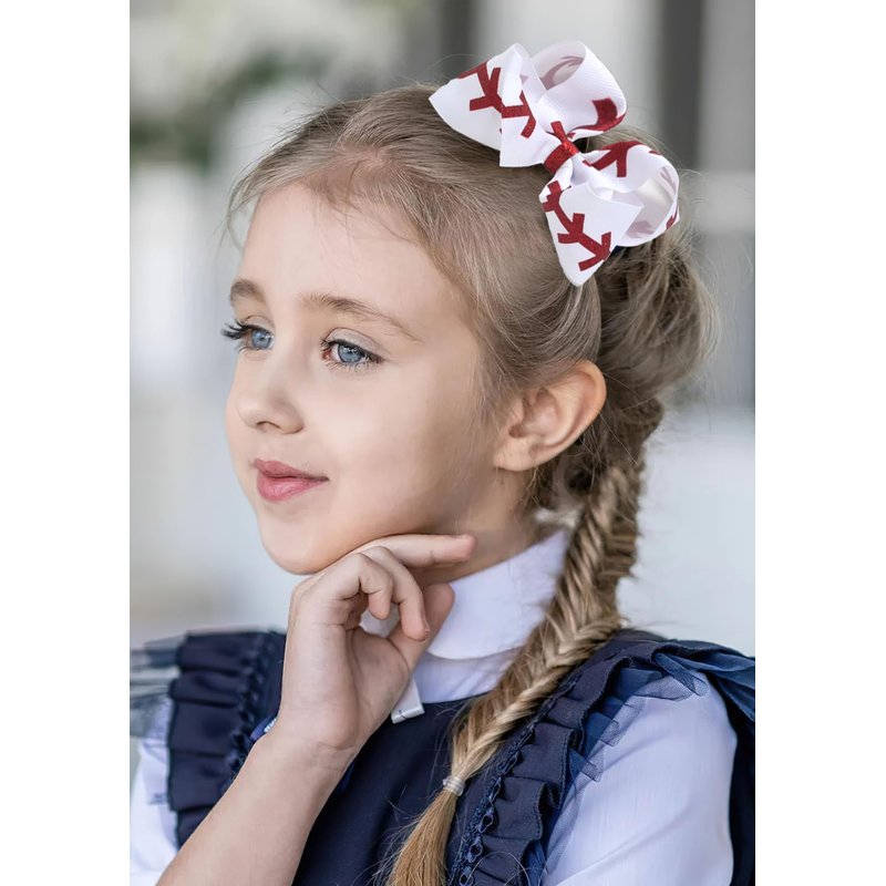 2Pcs Softball Hair Bow Clips 4.5" Grosgrain Ribbon Bows with Alligator Clips Hair Barrettes Hair Accessories for Little Girls Teens