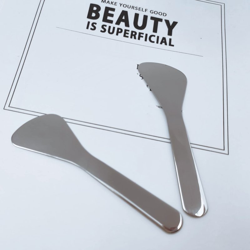 Package includes: 2 pieces stainless steel cosmetic spoon spatulas