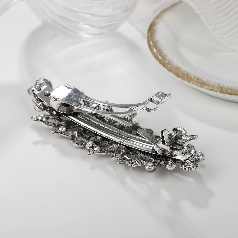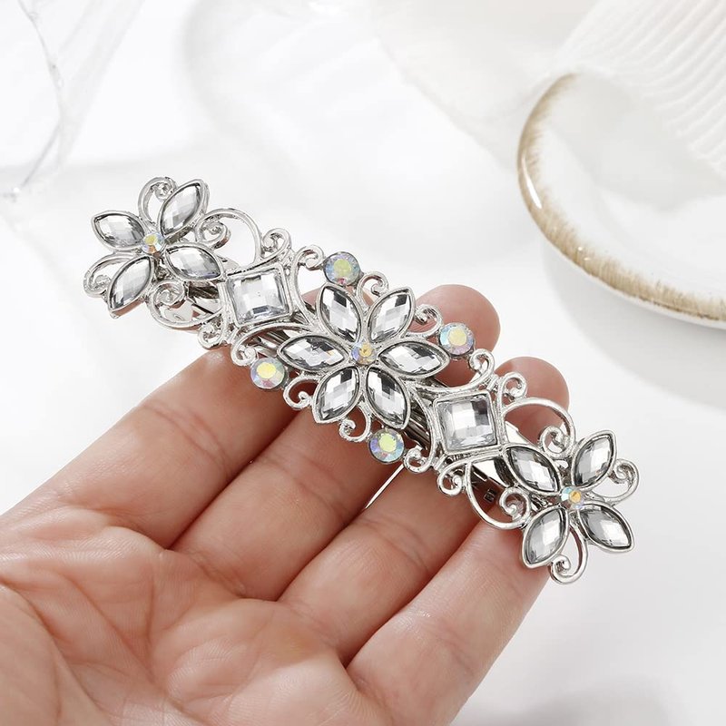 2PCS Vintage Hair Barrettes with French Clip Clasp and Sparkling Stones Retro Hair Clips for Women and Girls 3.5" Length Elegant Hair Pins Hair Accessoires