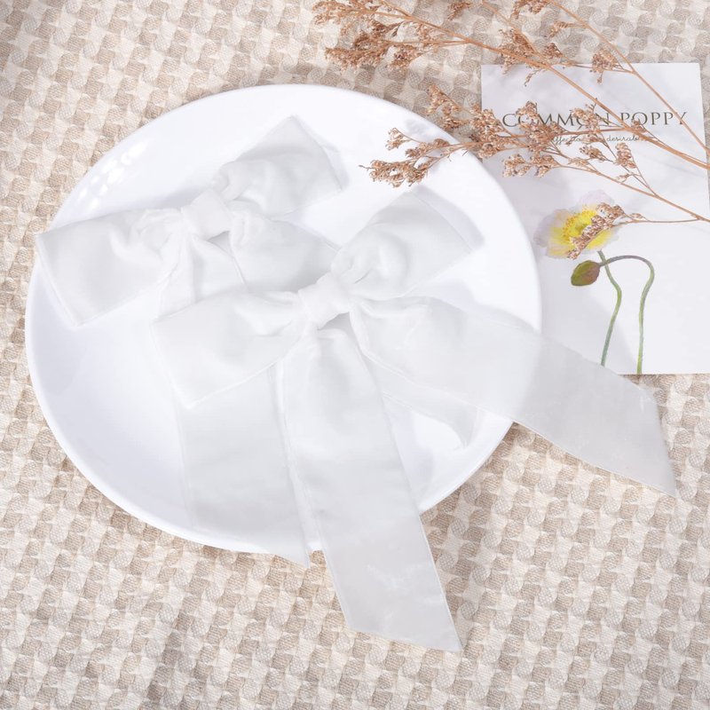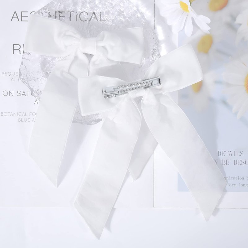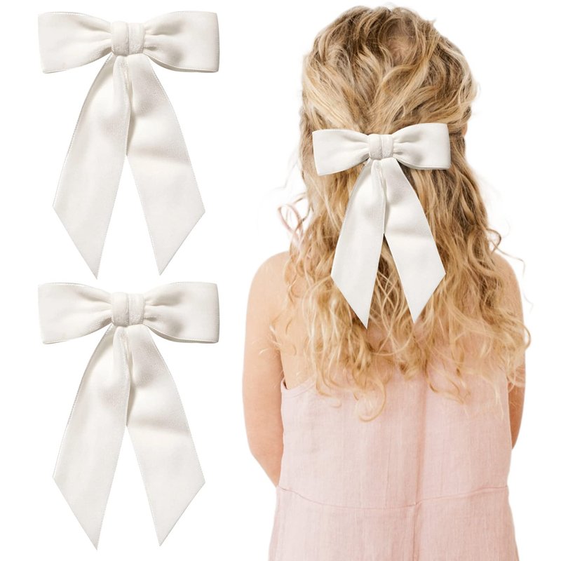 AILEAM’s big 2pcs White Hand-made velvet hair bows ribbon clip