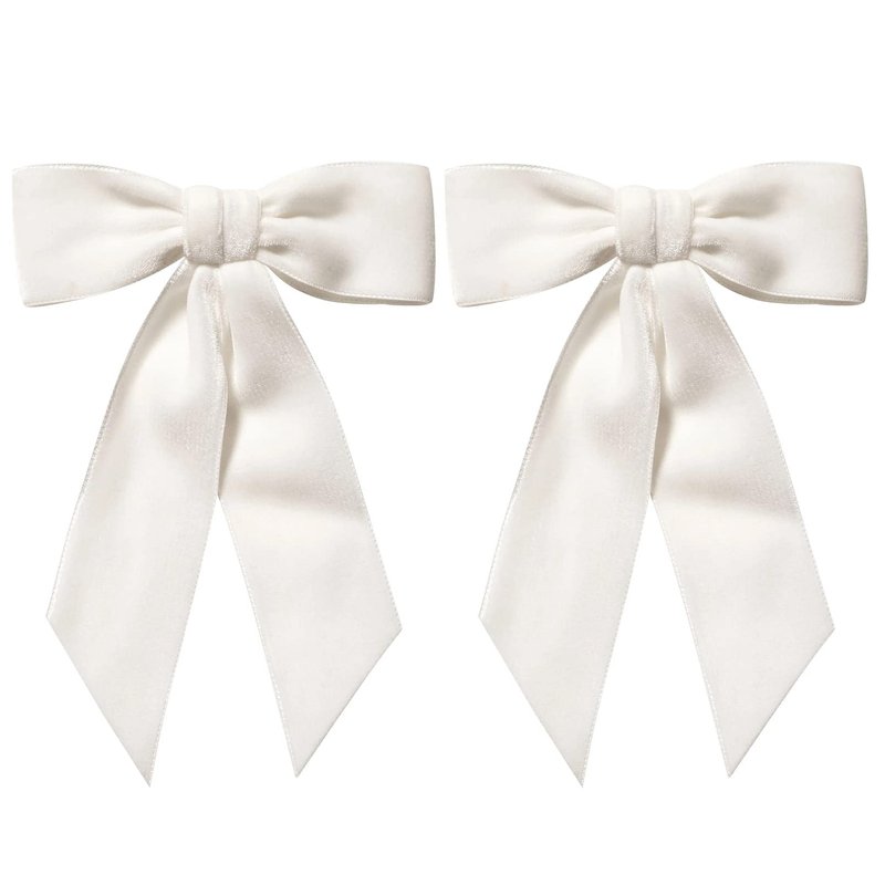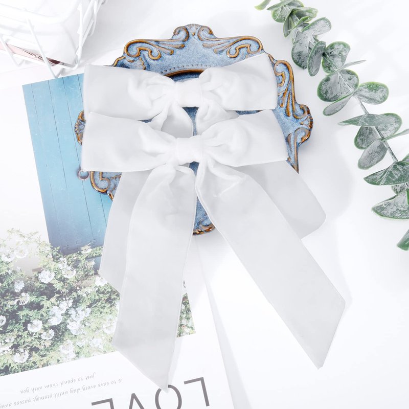 - SUPER CUTE VELVET BOWS-- The 2PCS White fall velvet hair bows are so cute, made with very high quality velvet fabric tied in a bow approximately 5" across and will work for many more years, not too small or too big.