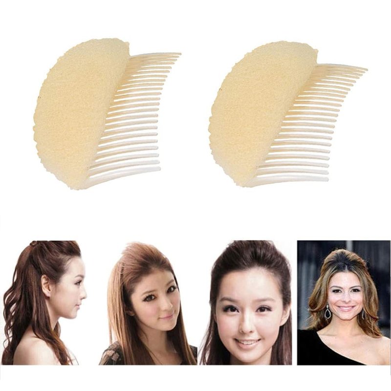 2PCS Women Lady Girls Soft Sponge Foam Hair Base Inserts Bump Up Hair Pads Stick Bun Maker Hair Styling Clip Hair Comb Braid Tool Hair Styling Accessories Beige