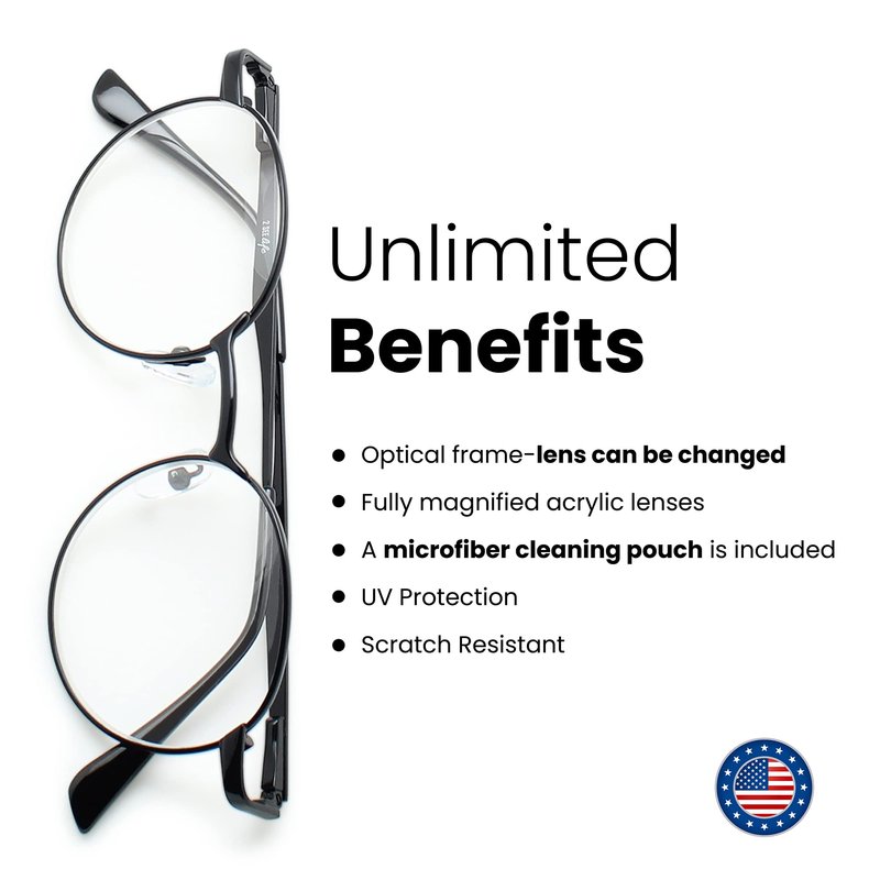 - STYLISH & REPLACEABLE LENS: Style yourself and get tons of compliments by wearing designer glasses for men & women. You can also replace the eye glasses frames lens with your prescription, progressive and myopic reader glasses lenses