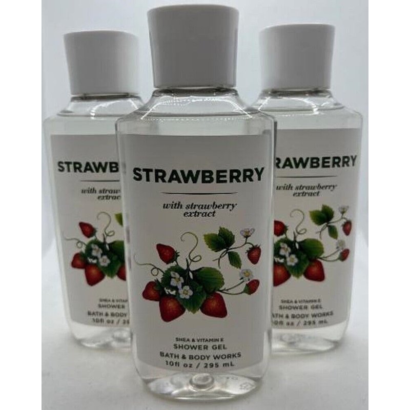 3 bath body works STRAWBERRY Shower Gel With Strawberry Extract 10 Oz