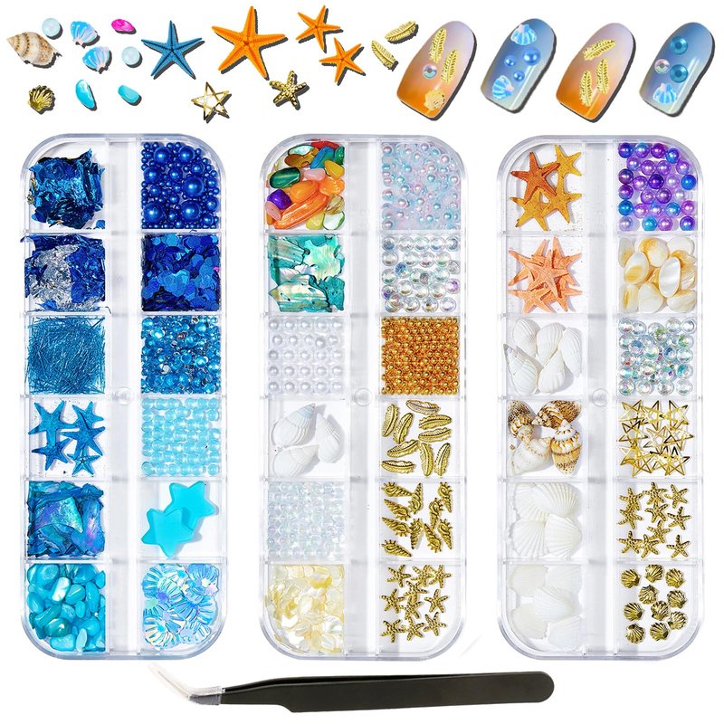 - 【What Will You Get】—You will receive 3 boxes of summer style nail art charm and 1 pair of tweezers, each with 12 different shapes included. Rich in quantity and styles, it can meet daily needs.