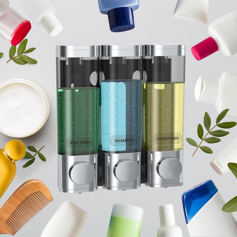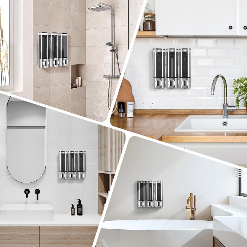 Shampoo and Conditioner Dispenser Shower Soap Dispenser Wall Mounted 3 Chamber No Drill, Be used for Bathroom, Kitchen, Hotel