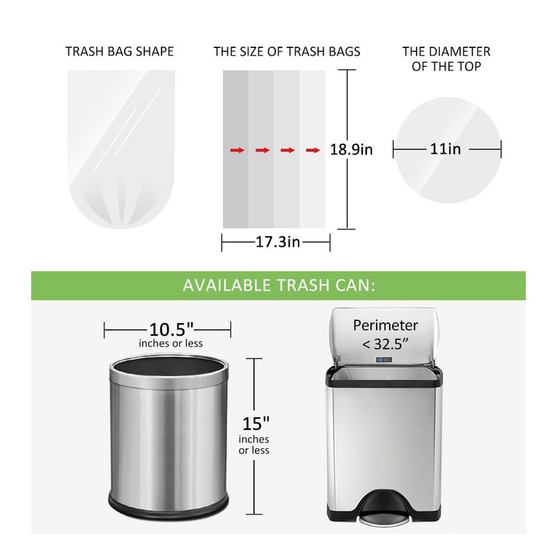 - MULTIPURPOSE: Our trash bags are suitable for use in bathroom, bedroom, living room, dining room, office and cleaning pet’s litter and baby diapers.