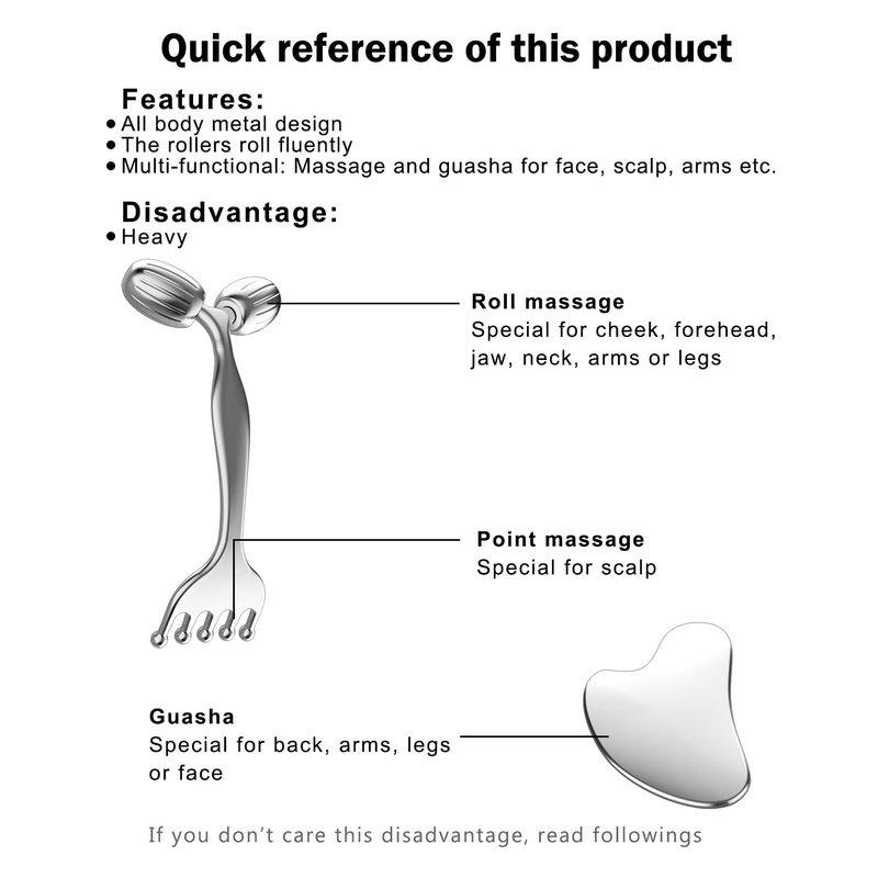 - Beauty Skin Care Set: There is a pure metal face roller and a metal gua sha massage tool in the gift box. The combination of the two facial tools is ideal for your all body skin care.