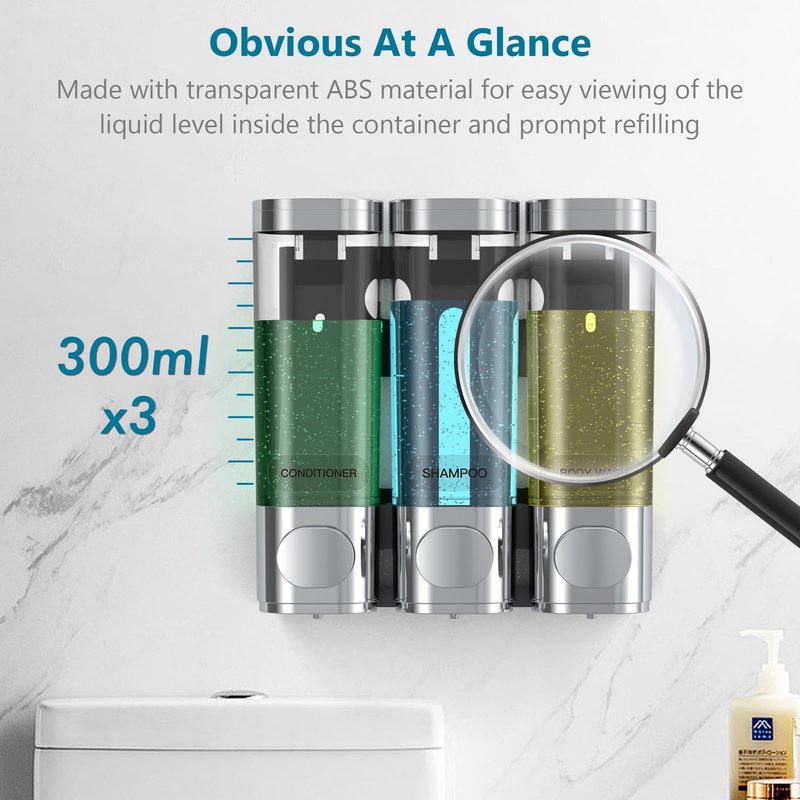 【Sturdy and durable】 The bathroom soap dispenser is made of thickened imported ABS plastic, which is durable, scratch-resistant, drop-resistant, heat-resistant, not easily deformed, rust-free, waterproof, moisture-proof, and easy to clean.