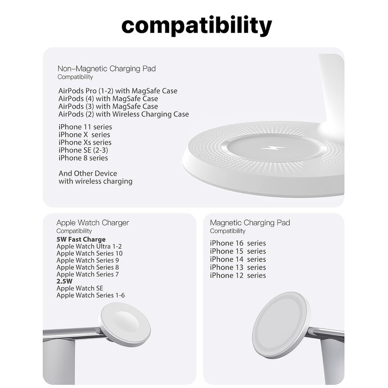 - What's Included: 3-in-1 Magnetic wireless Charger, 5.3 ft (1.65m) USB-C cable, Power Adapter, user manual, 2-year warranty, and 24-hour friendly customer service