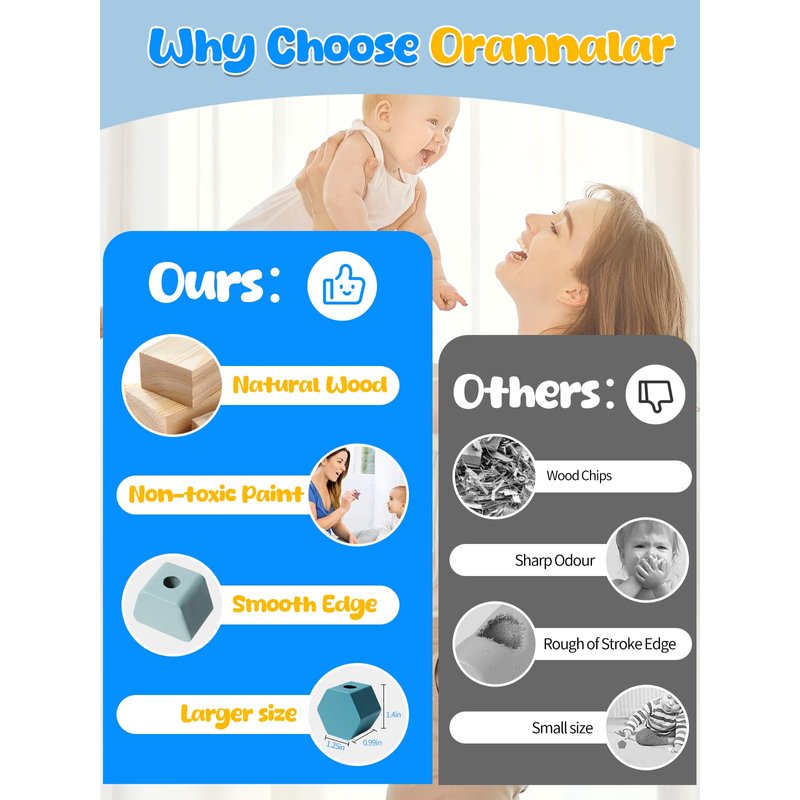 - 【Clever Toy to Help Conceptualize Basic Shapes】Orannalar's Perfect for toddlers to develop classification skills by sorting wooden blocks of different shapes, while also using these wooden blocks to stack interesting structures to stimulate imagination and creativity. It made from high-quality wood, coverd by safe, odorless water-based paint, match US safety standard,BPA-Free, Non-Toxic, Its sturdy construction means it can withstand the rough and tumble of toddler play