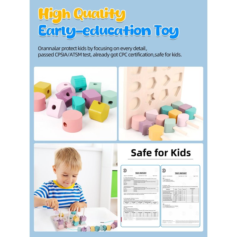 - 【The Colors and Activities Will Keep Kids Busy for Hours】Orannalar offers a variety of sensory experiences for your child, including the tactile feel of the wooden shapes, the bright and bold colors, and the satisfying sound of the shapes clinking as they are sorted into the correct slots. Kids can develop color and shape recognition, social-emotional learning, imagination, hand-eye coordination, and early logic skills by sorting wooden blocks into the correct holes