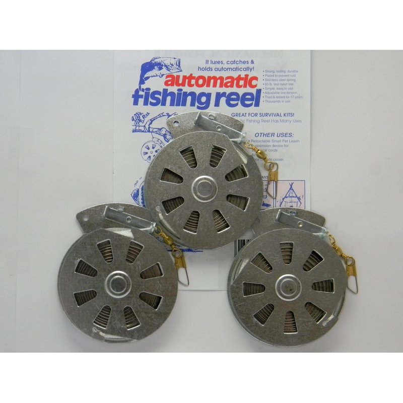 You will receive 3 Mechanical Fisher Reels. These are the Best reels on the market. The Stainless Steel Spring is the best choice for Fisherman, Preppers, Survivalists and Hunters, since it will not rust. They're very easy to use. Simply attach to the object of your choice, bait the hook, set depth and trigger, then wait. The Mechanical Fisher does the rest. It sets the hook, and retrieves the fish! Kind of like a mouse trap for Fish, but these do not kill the fish! Warning: This product can expose you to chemicals which is [are] known to the State of California to cause cancer and birth defects or other reproductive harm.