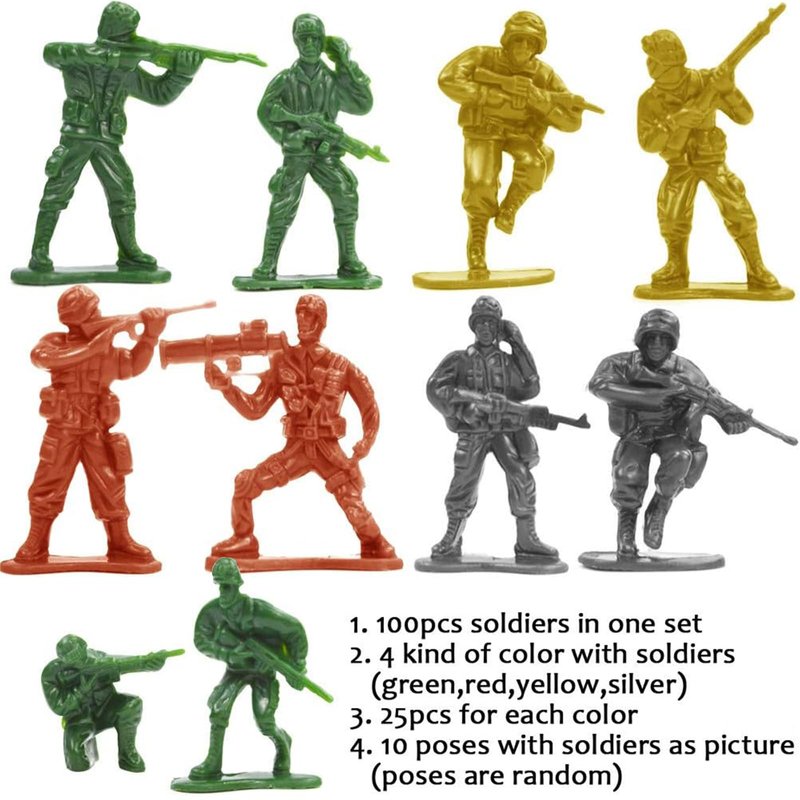 - PERFECT DESIGN - Our toy army men have 10 different positions like kneeling, standing, running, etc. (packed randomly), presenting all kinds of scenarios in battlefields. This realistic and detailed play set will allow your child to build their creativity and imagination whilst understanding military life. We wrap the army men toys with a good quality PVC handbag for easy storage and carrying.