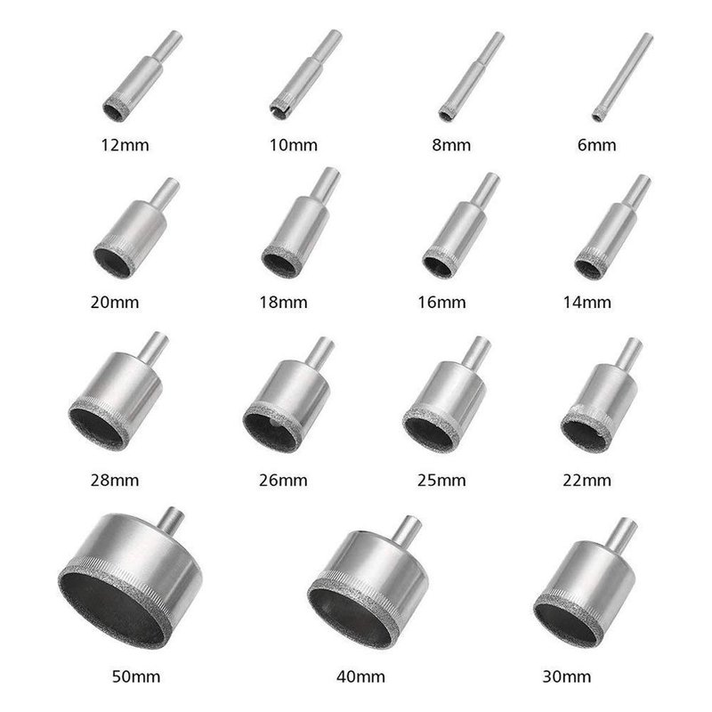 - Perfect Drill Bit Set - Our diamond hole saw kit come with 15 different sizes: 6/8/10/12/14/16/18/20/22/25/26/28/30/40/50 mm (0.24/0.31/0.4/0.45/0.55/0.63/0.7/0.79/0.87/0.98/1/1.1/1.2/1.6/2.0 inch). Our drill bit set can meet your various demands.