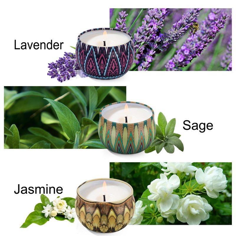- 【3 Pack Candles Sets】Lavender scented candles soothe the body and mind; Sage scented candles are refreshing and pleasant; Jasmine scented candles are fragrant and charming. Each candle has a unique fragrance. Three kinds of aromatherapy, three kinds of charm, add color to your life.