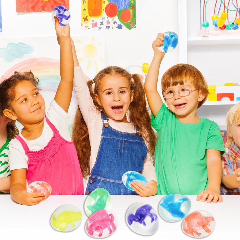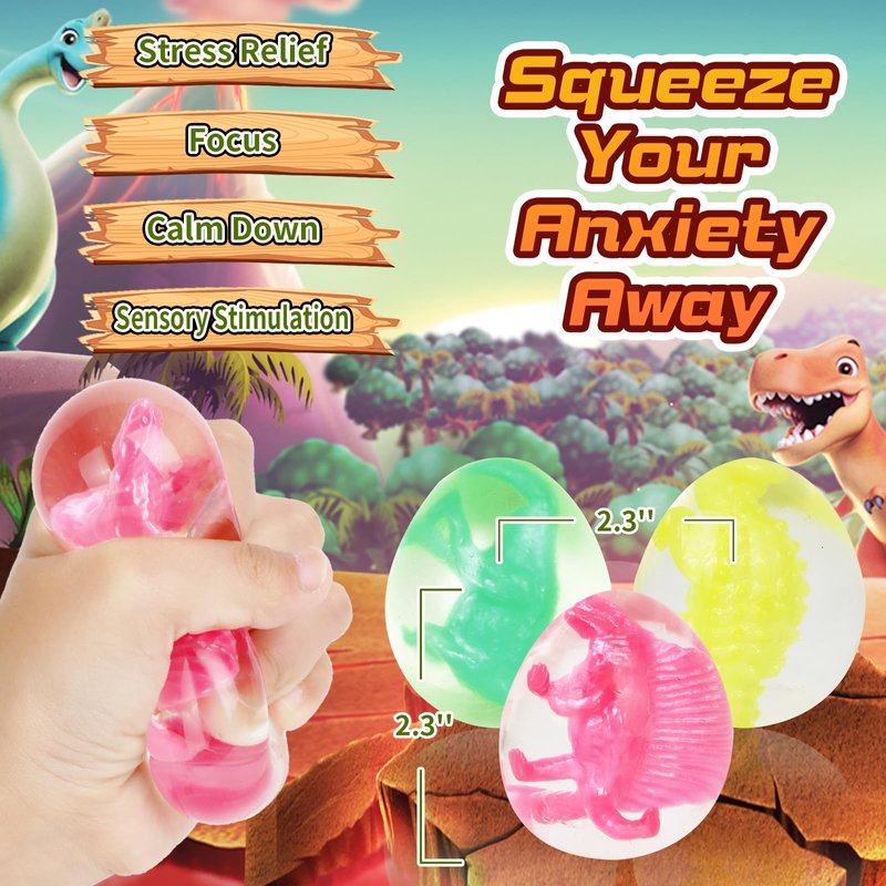 - Perfect Children's Party Gift: This crystal-clear dinosaur egg squeeze ball is suitable for both children and adults. This fun sensory ball can effectively help you relieve stress and strengthen emotional communication between parents and children. It's an ideal prize for children's classes, a (dinosaur) party gift for children aged 8-12, a summer gift, and a party gift for children's gift bags. Whether it's a birthday, party, festival, or other special occasion, these toy party gifts are perfect choices.