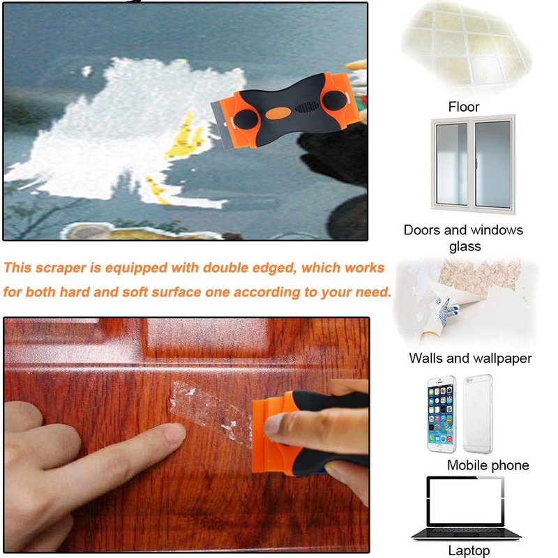 - 【Double-edged】 Double-edged razor scraper,single edged heavy duty blades and plastic blades work respectively for different purposes one scraper can handle a variety of tasks.It can be used on hard or soft surfaces without scratching, saving space and time, and bringing more convenience.