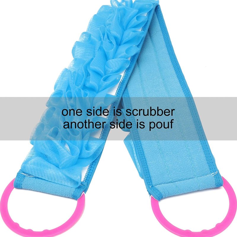 - Double-sided design: One side of the strap exfoliator is a scrubber, another side is a pouf to make more bubbles and apply lotion/cream to the back, the strap is long enough to reach any spots of your body.