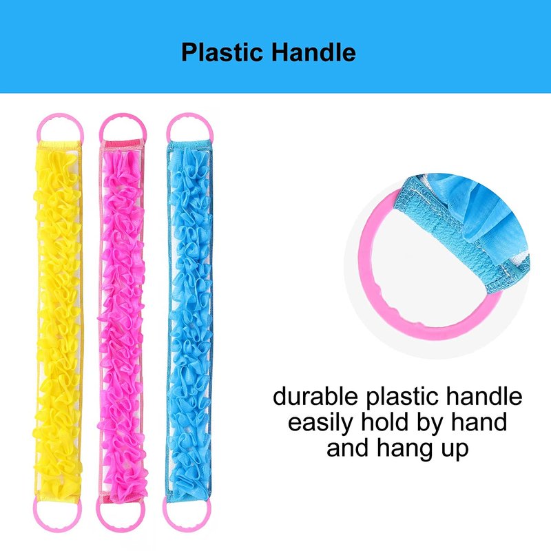 - Durable Fabric: the surface is not rough to hurt your skin, but effective to remove the dead skin. The plastic handles, easy-clean, sturdy, and handy, easy-grasp to pull straps over the back.