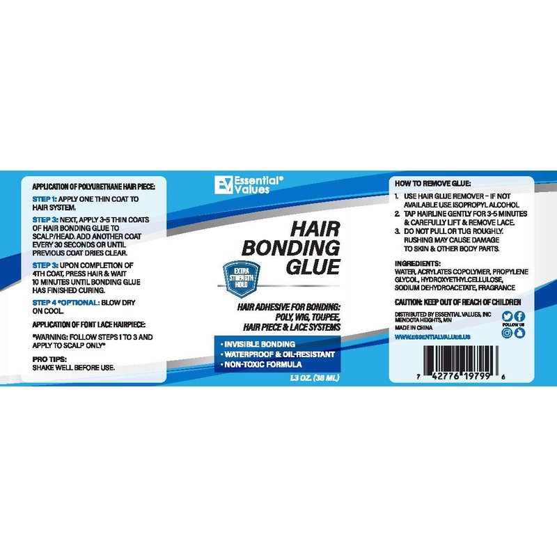 - INVISIBLE BONDING GLUE FOR POLYURETHANE & LACE SYSTEMS: Our Hair Glue Adhesive is Safe for Use on BOTH Poly and Lace Hair Replacement Systems! The Essential Values Hair Bonding Glue creates a Invisible Bond after Application that Quickly Hides Your Balding Hairline! Create a Beautiful Nature Look for Both Men and Woman in MINUTES!