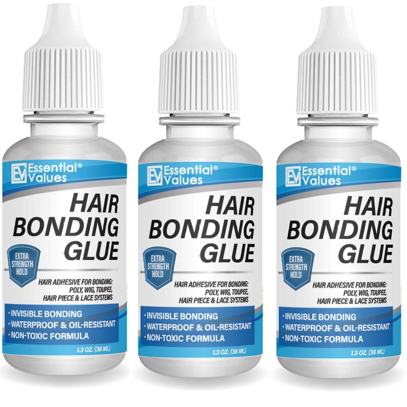 3 PACK Essential Values Hair Glue Bonding Adhesive (1.30 fl oz / 38mL) – Invisible Glue with Moisture Control Technology – Perfect for Poly & Lace Hairpieces, Wigs, Toupee Systems