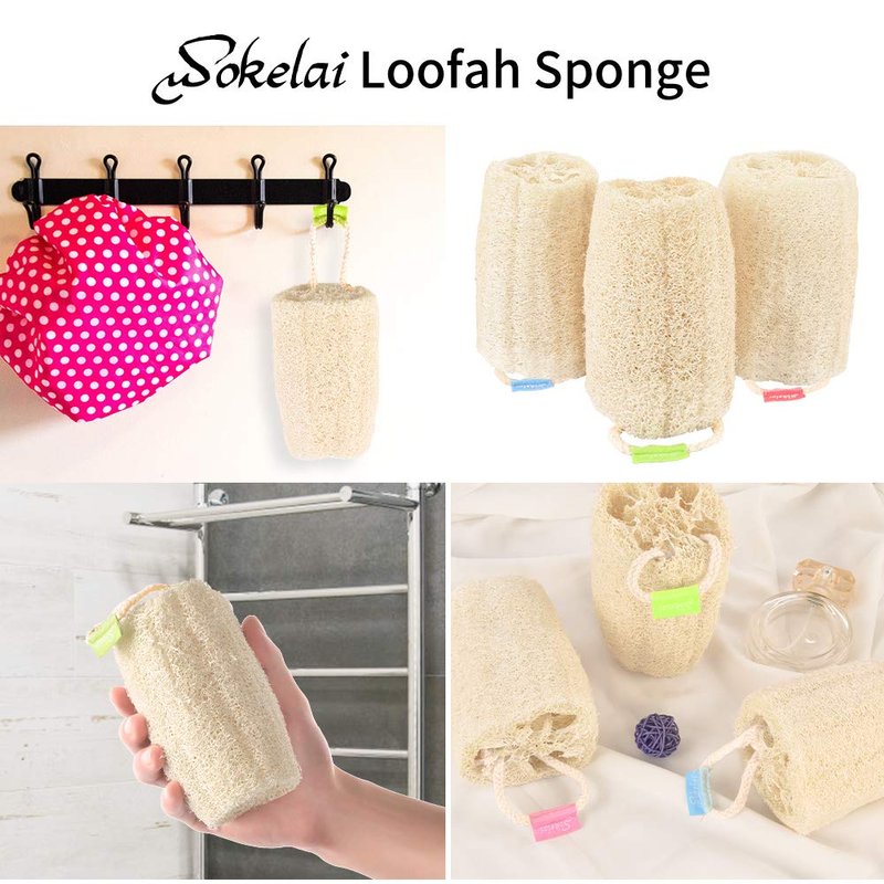- 4. Package Included: 3* loofah sponges(Each loofah is about 5 inches long, 2inches-3inches in diameter), They are easy to clean the back, feet, and shoulder and clean more thoroughly.
