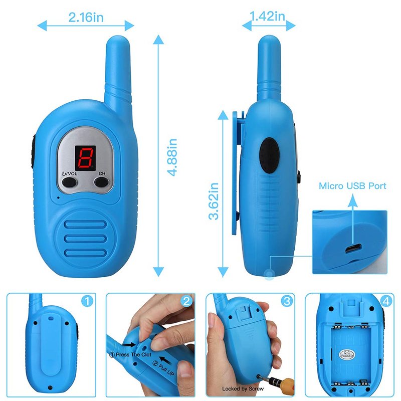 - 2 MILE RANGE& MICRO USB PORT- These 3 Pack Kids Walkie Talkies has 2 mile talking range in open field. (Attention Please : This walkie talkies suppost rechargeable batteries , you need put in the rechargeable batteries , then use USB cable charge the walkie talkies )