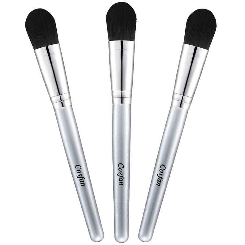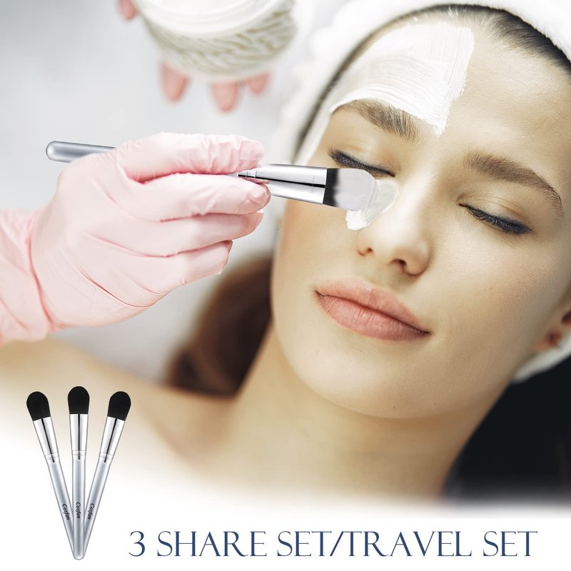Cosfan Facial Mask Brushes Makeup Brush Woman Makeup Tool Lightweight Wooden Handle Delicate Bristles, Pack of 3, Silver