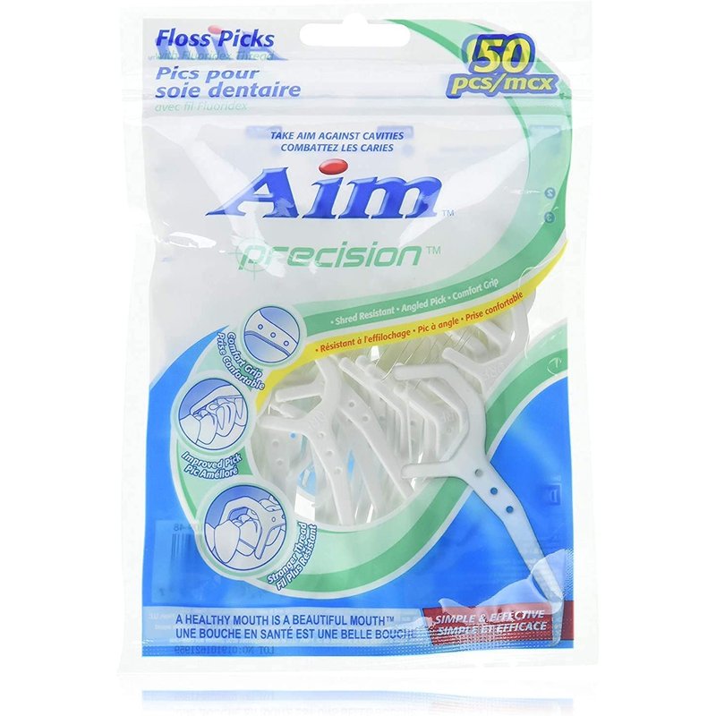 3 Pack of Aim Precision Dental Floss Picks Waxed 50 Each Perfect for Family, Hotel, Travel