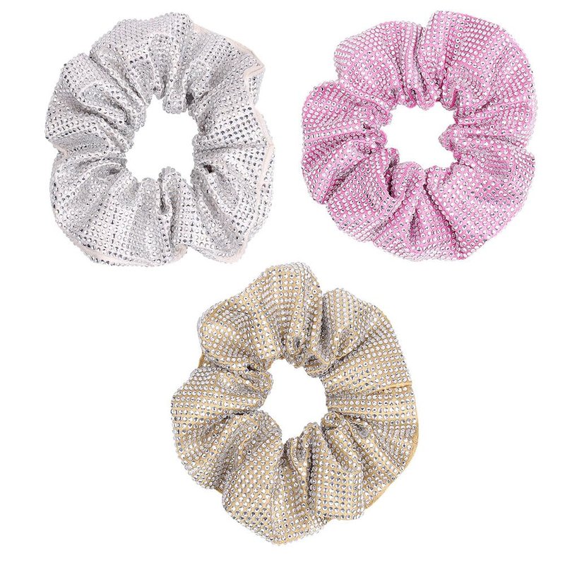 - What you will get:1 pink+ 1 silver+ 1 beige rhinestones bligbling hair scrunchies.