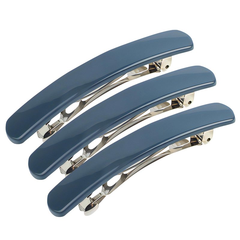 3 Pack Shiny Face Elegant Arched Triple Clipping French Barrettes Bow Tortoise Plastic Cover and Metal Clasp Style Bun Ponytail Clips for Thick Hair Chignon Hair Ornament (Navy Blue)