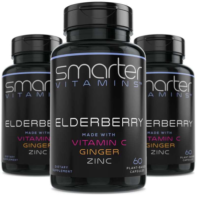(3 Pack) Smarter Elderberry Capsules + Vitamin C + Ginger & Zinc, Herbal Supplement for Immune Support, Powerful Black Elder Berry Extract Antioxidant Vitamin, 180 Vegan Pills