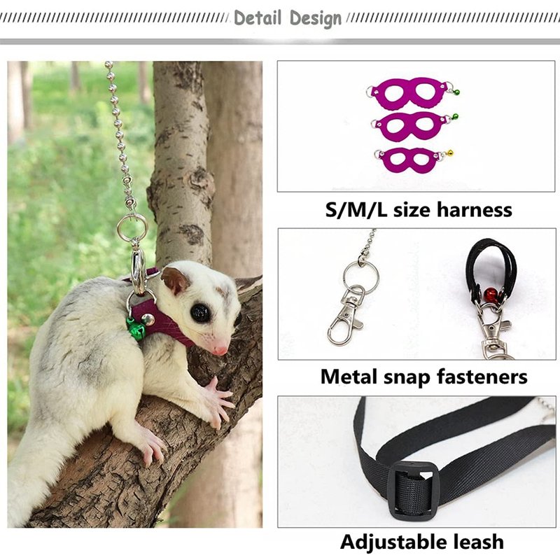 - 3 SIZE PACKS SET: Our sugar glider harness and leash set comes with small, medium and Large 3 size leather harness, great for your lovely small animal pets during its growing.It comes with a leash of about 1.6m / 63inch long, the length of the rope can be adjusted freely, allowing you to keep an ideal distance from your pet.