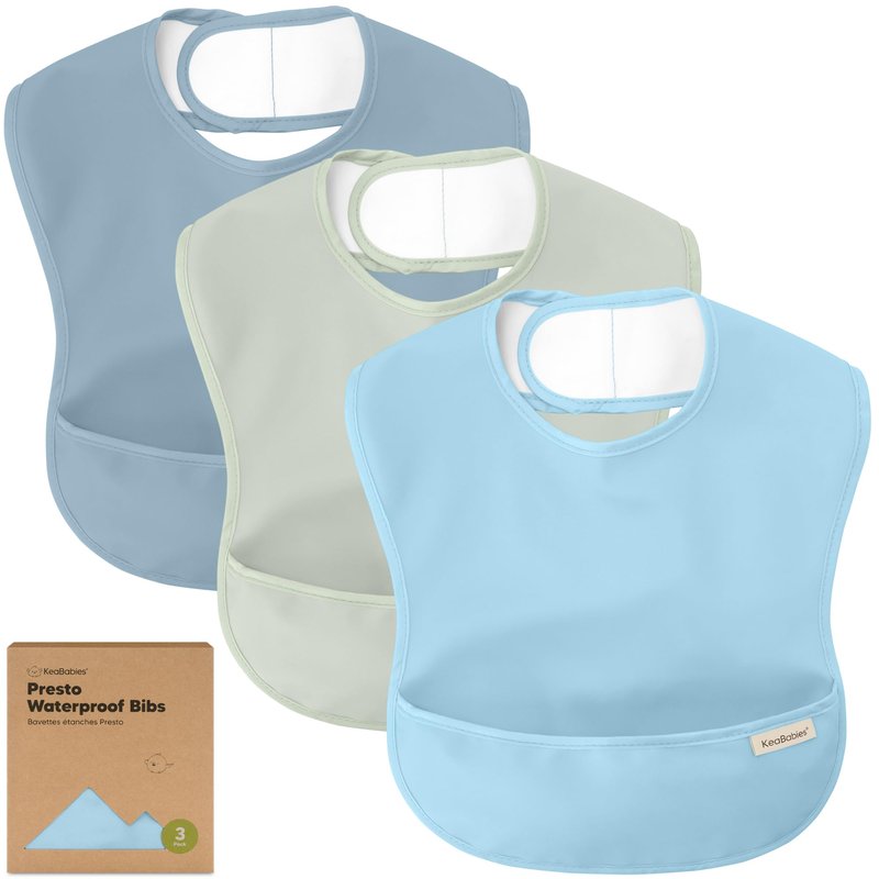 - Lightweight, Waterproof Bibs - Unlike silicone bibs, our KeaBabies Presto Waterproof Bib are ergonomically designed for comfort and functionality. The favorite go-to baby food bibs for modern parents. Tested and loved by infants and fidgety toddlers.