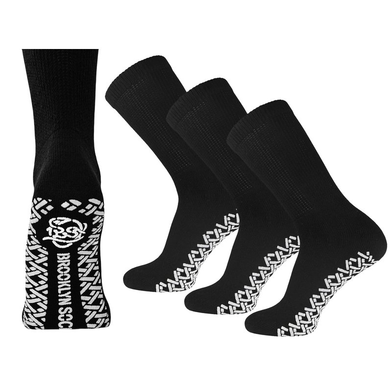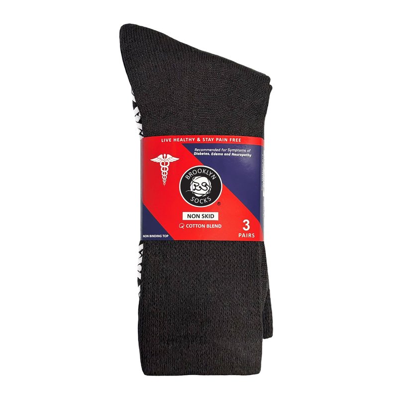 Feel the cushioned comfort in everyday step with excellent mens and womens diabetic socks with gripper bottom from Brooklyn Socks. Slip resistant tread grips provides greater traction on smooth surfaces such as hardwood, vinyl or tile floors. Our non-binding socks feature a loose knit design that provides proper cushioning without squeezing or constricting your legs. These must have diabetic socks are physician approved and highly recommended for people with diabetes, edema, and neuropathy caused by circulatory problems.