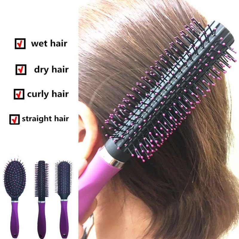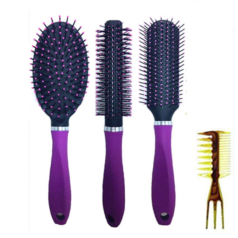 3 Pc Value Set Hair Brush, Detangling Brush Professional No Pain Detangler, Straightening, Styling & Drying for Women,Men,Kids,Purple, With a Bonus comb
