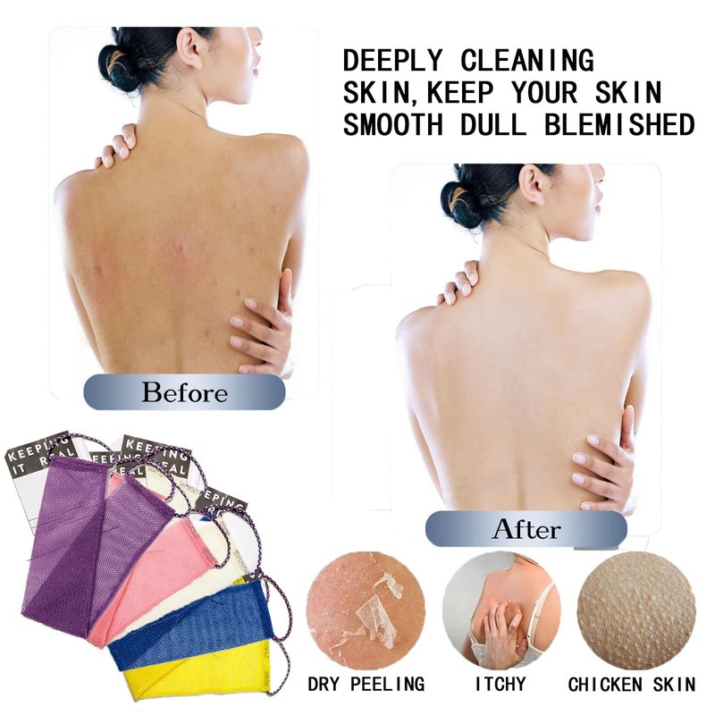 - 【More efficient cleaning】The exfoliating body net is rougher than a ordinary bathing cloth, but soft enough for daily body cleansing.easy for removing dead skin, dirt, oil, and eliminating impurities, unclogging pores, suitable for women and men of most ages to use