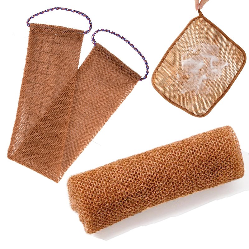 - 【100% African mesh sponge】3 pieces of African mesh sponge. One face towel, one back bath towel, one body bath towel, Clean your whole body and let you experience a different kind of physical and mental cleanliness. Note: slight fading is normal at first and will not fade after several uses, please soak the product in hot water for 15 minutes before use